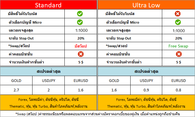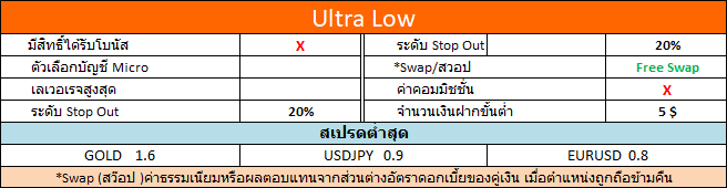 ***เช่น ท่านเล่นคู่สกุลเงิน GOLD# ภายใต้บัญชี Ultra low Standard / Ultra low Micro