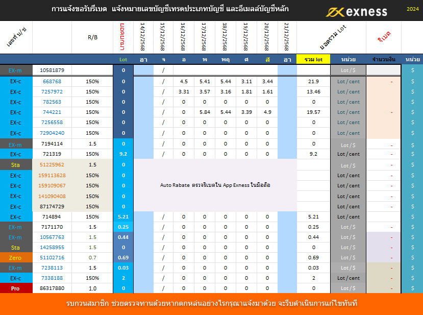 • ตราวจสอบ Reabate Exness ประจำวัน